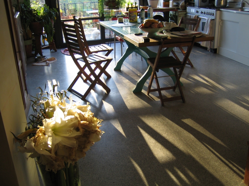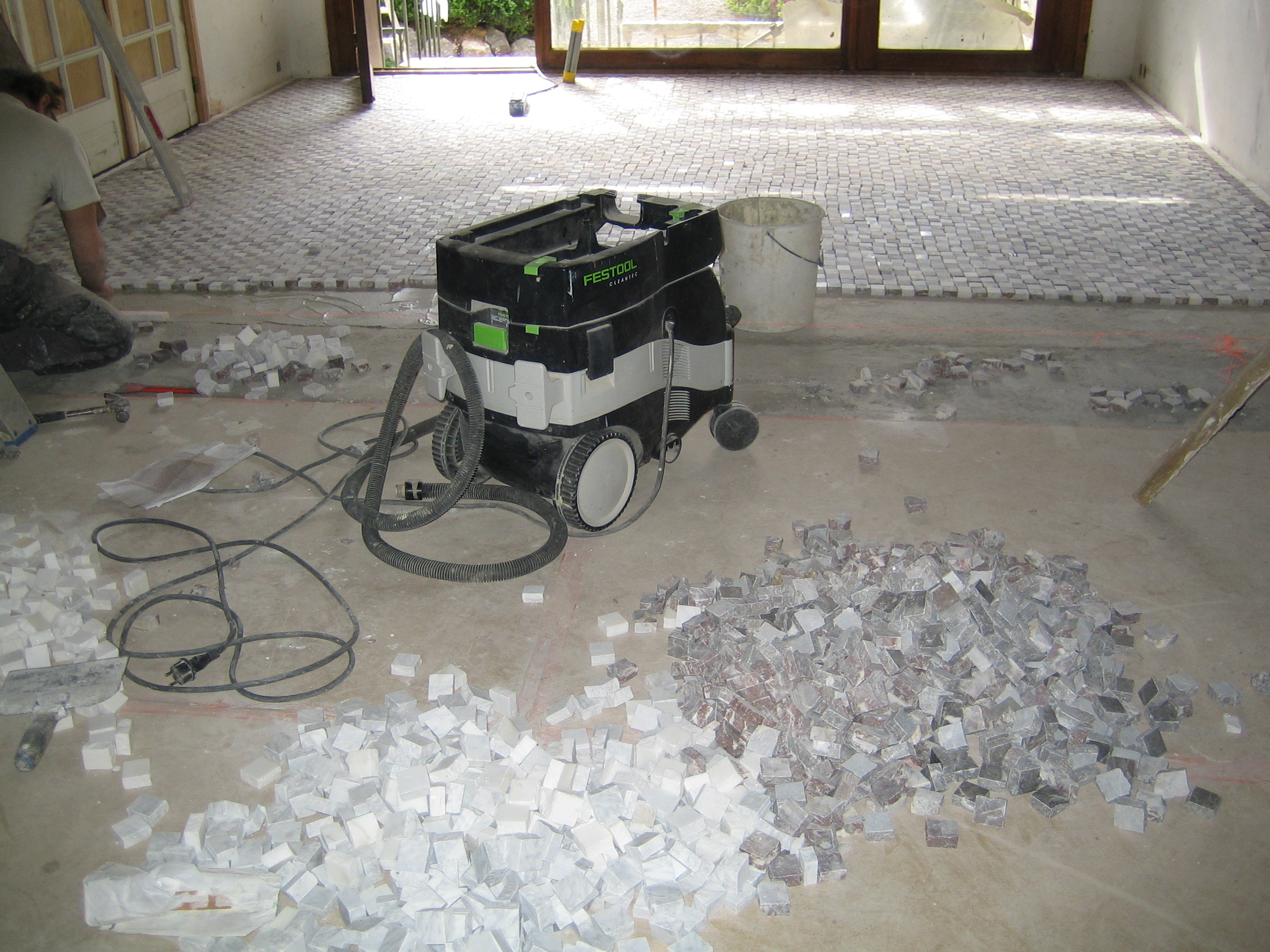 Et voilà comment je suis revenu à une très vieille technique de fabrication de sols qui nous vient, par l’intermédiaire de Venise, de l’Opus Signinum des Romains. Merci Mario !